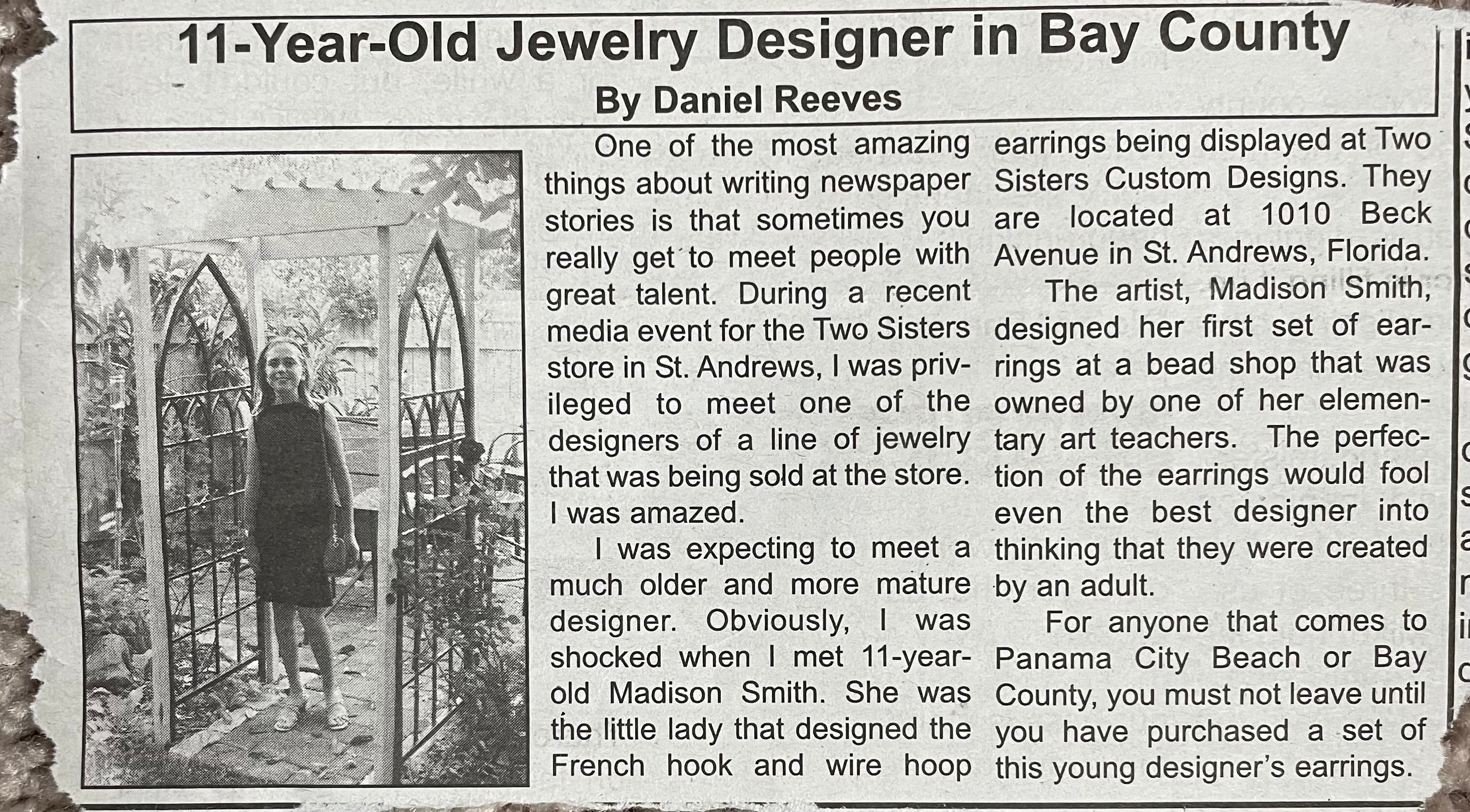 Madison's Jewelry moved from farmer's markets to being sold in an actual store known as Two Sisters. That was a big deal to an eleven-year-old back then. I was being interviewed and in news articles, the city had never heard of such a thing. An eleven-year-old jewelry designer? Yup, that's me.